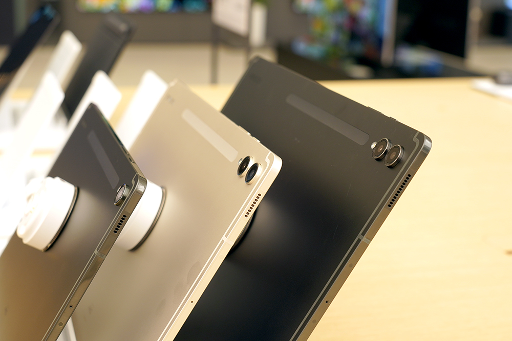 가장 먼저 살펴볼 갤럭시 탭 S9은 10.95인치(27.81cm) WQXGA (2560 x 1600) 해상도의 다이나믹 AMOLED 2X 디스플레이가 탑재되었습니다. 일반적으로 많이 사용되는 10인치대의 태블릿이기 때문에 가장 무난한 크기를 제공하는 제품이라고 할 수 있습니다. (무게:498g, 배터리:8,400mAh)