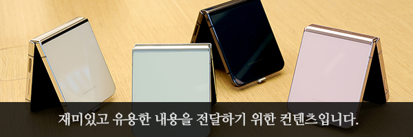 제가 마음에 들었던 갤럭시 Z 플립5의 색상은 크림, 민트, 라벤더, 그라파이트 순서였습니다. 크림 컬러가 가장 깔끔하다는 느낌을 받았고 뒷면의 패널이 유광의 유리로 마무리되었기 때문에 그라파이트 컬러의 경우에는 지문 때문에 관리의 어려움이 있어 보였습니다. 그리고 사람마다 취향 차이가 있으니 실제로 삼성스토어를 방문해서 색상을 살펴보시길 추천합니다.