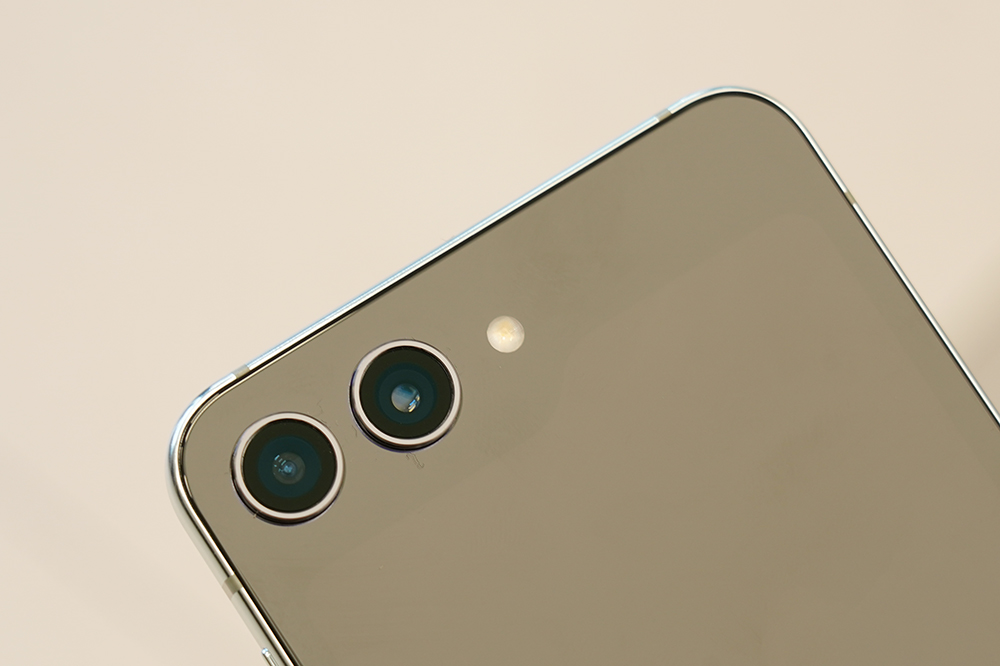 갤럭시 Z 플립5에는 1,200만 화소의 초광각(F2.2)와 1,200만 화소의 광각(F1.8, 듀얼 픽셀 AF) 듀얼 카메라가 탑재되었습니다. 그리고 플렉스 윈도우를 통해서 편리하게 셀피를 촬영할 수 있습니다. 그 외에도 나이토그래피라는 저조도 환경에서 사진 품질을 높여주는 기술이 탑재되었습니다. 그렇지만 사진에서도 알 수 있듯이 유광으로 마무리되어서 지문이 상당히 잘 묻는 편입니다.