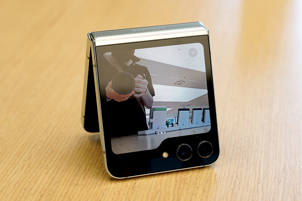 그리고 삼성 갤럭시 Z 플립5의 플렉스 윈도우는 후면 듀얼 카메라를 모니터링하는 용도로 활용할 수 있습니다. 조금 더 나은 성능의 카메라로 셀피를 촬영하기를 원하는 분들에게 유용한 기능입니다. 그리고 사진을 촬영한 후에 퀵뷰 기능을 통해서 사진 결과물을 확인할 수 있습니다.