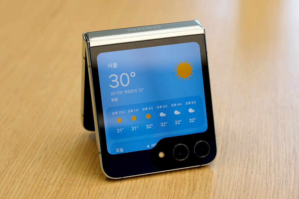 그리고 달력이나 날씨를 확인할 수 있는 기능도 갖추고 있습니다. 이전 세대의 플립4의 커버 스크린의 크기가 1.9인치였던 것과 비교하면 정보량의 차이가 어마어마하다는 것을 확인할 수 있습니다.