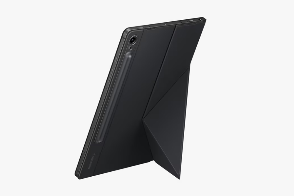 갤럭시 탭 S9 스마트 북커버는 가로 혹은 세로 모드로 편리하게 사용할 수 있도록 수평과 수직 방향으로 사용할 수 있는 스탠드를 탑재한 제품입니다. 그리고 이러한 제품들은 후면에 자석으로 고정이 되는데요. 옆면이 뚫려 있는 형태로 제작되어서 약간은 취약하다는 단점도 가지고 있습니다.