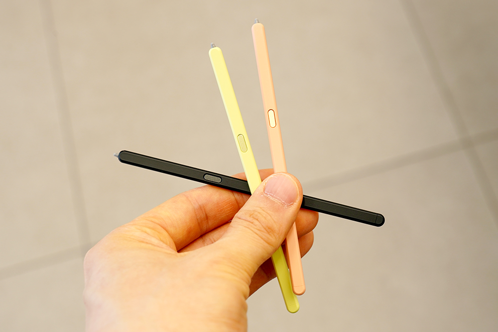 갤럭시 Z 폴드5 슬림 S펜 케이스는 뒷면에 S펜이 수납된 형태로 제작되었습니다. 색상은 아이스 블루와 블랙 그리고 크림 중에서 선택할 수 있는데요. S펜의 컬러가 다채롭다는 점이 재미있는 부분이라고 생각되었습니다.