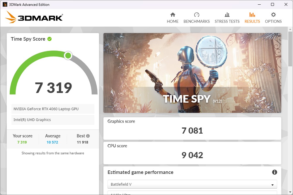 3D마크(3DMARK)를 이용해서 엔비디아 RTX 4060 그래픽 카드의 성능을 살펴보면 파이어 스트라이크(Fire Strike)는 16,742점, 타임 스파이(Time Spy)는 7,319점, 포트 로얄(Port Royal)은 4,062점으로 측정되었습니다.