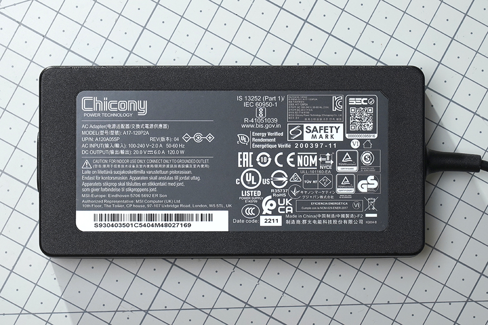 납작한 형태의 어댑터는 휴대하는데 크게 부담이 되는 크기는 아니라고 판단되었습니다. 그리고 어댑터의 스펙을 살펴보면 입력은 프리볼트를 지원해서 해외에서도 사용할 수 있고 출력은 20V/6A 120W입니다.