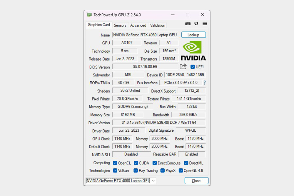 MSI 사이보그 15 A12VF에는 DLSS 3를 지원하는 엔비디아 RTX 4060 그래픽 카드가 탑재되었습니다. 뉴 라인업의 제품이라서 다양한 종류의 게임들을 쾌적하게 플레이할 수 있습니다.