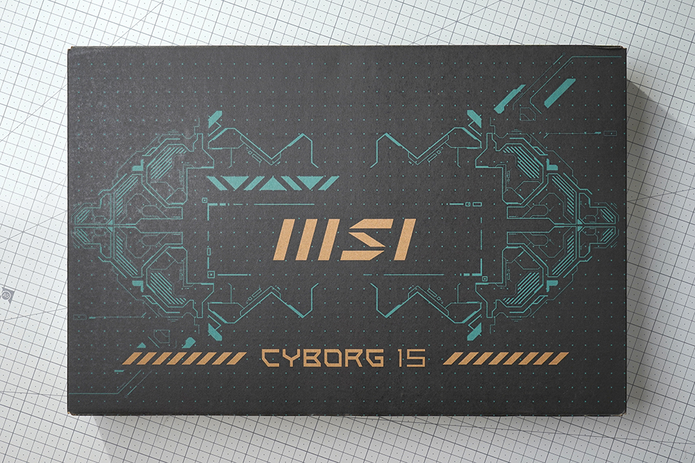 MSI 사이보그 15 A12VF의 박스는 블랙 컬러로 제작되었고 이름에 걸맞은 상당히 사이버틱한 디자인이 적용되었습니다. 패키지나 본체의 디자인적인 부분에 신경을 많이 쓴 것 같다는 인상을 받았습니다.