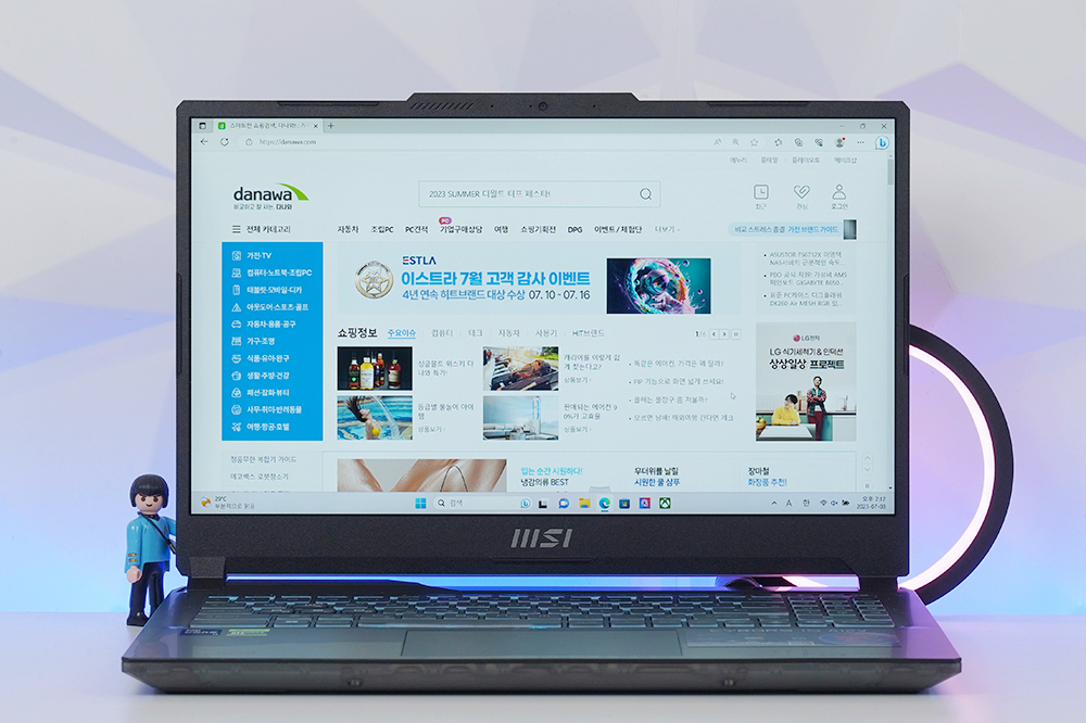 MSI 사이보그 15 A12VF의 두께는 21.95mm이고 무게는 약 2.02kg으로 측정되었습니다. 고성능 게이밍 노트북을 설계되었다는 점을 고려하면 휴대성은 좋은 편이라고 판단되었습니다.