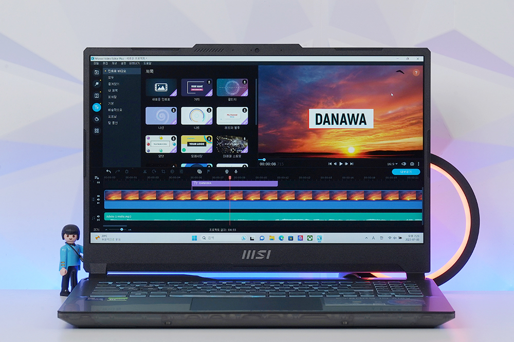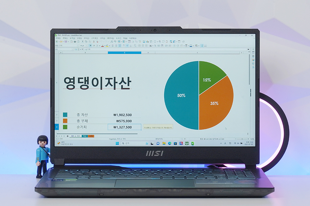 MSI 사이보그 15 A12VF의 키보드에는 블루 LED와 숫자 패드가 탑재되어 있어서 문서 작업 용도로도 활용할 수 있고 내장된 HDMI 단자에 프로젝터를 연결해서 프레젠테이션을 진행할 수도 있습니다.
