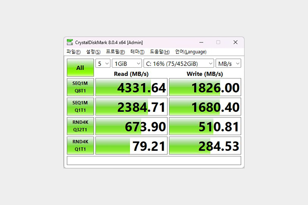 그리고 MSI 사이보그 15 A12VF에는 512GB 용량의 NVMe M.2 SSD가 탑재되었습니다. 속도가 상당히 빠른 편이어서 각종 작업을 쾌적하게 진행할 수 있습니다.