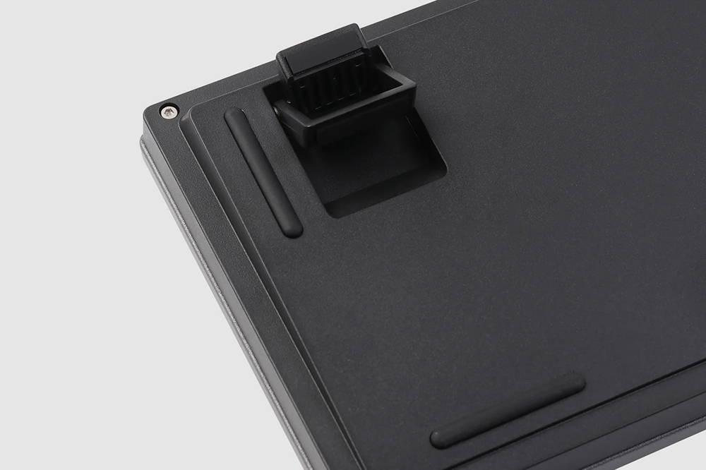 Epomaker Shadow-X 커스텀 키보드의 바닥은 심플한 스타일로 디자인되었고 커스텀 키보드에는 찾아보기 힘든 각도를 변경할 수 있는 지지대가 배치되어 있다는 점이 독특한 부분입니다.