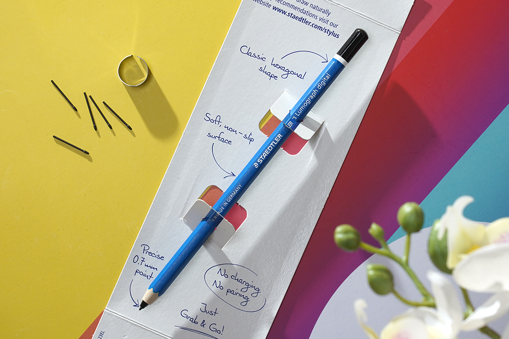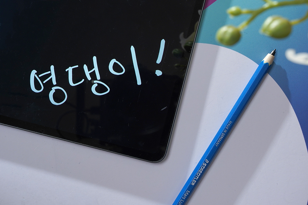 스테들러 S펜 클래식의 색상은 블루와 옐로우 두 가지 중에서 선택할 수 있는데요. 저는 블루를 구매했습니다. 특히 실제 연필과 같은 친환경 우드로 제작되어서 감성을 살릴 수 있고 미끄러짐 방지 표면 처리가 인상적이었습니다. 그렇지만 내구성이 연필처럼 약한 편이어서 조심해서 사용해야 한다는 점은 단점이라고 할 수 있습니다.