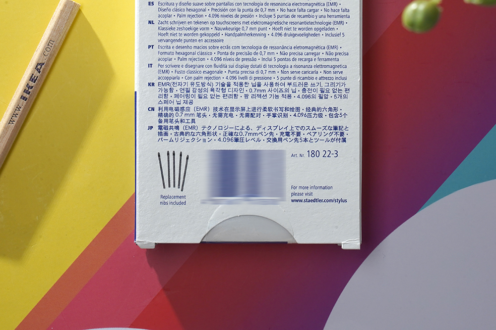 뒤쪽을 살펴보면 스테들러 S펜 클래식 블루은 독일에서 제작되었고 마스 루모그래프 디지털 (Mars Lumograph digital)이라는 문구가 인쇄된 것을 확인할 수 있습니다.