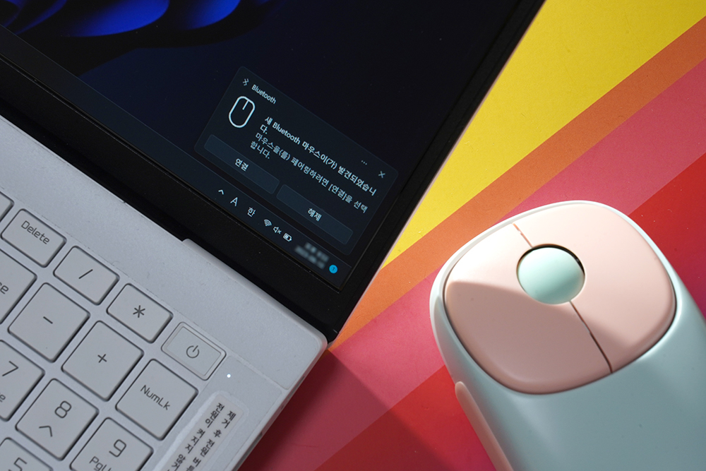 유그린 충전식 무선 마우스 MU102의 2, 3번 LED는 각각 블루투스 1, 블루투스 2에 할당되어 있습니다. 참고로 처음 실행시키면 자동으로 페어링 모드로 들어가고 나중에 다시 다른 기기와 페어링을 하고 싶을 때는 상단에 배치된 좌,우,가운데 버튼을 동시에 눌러주면 됩니다.