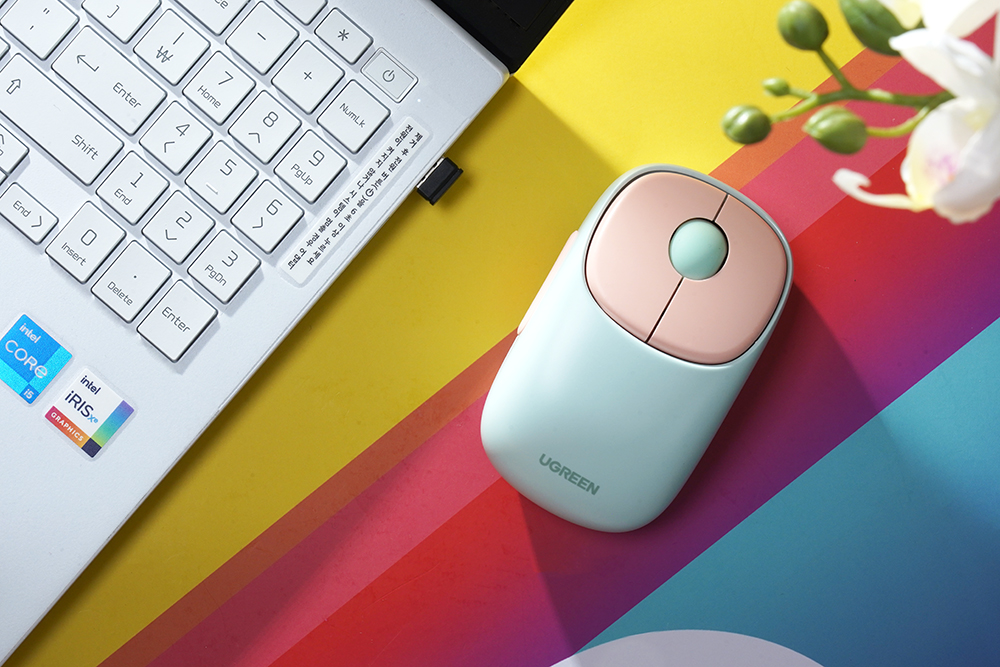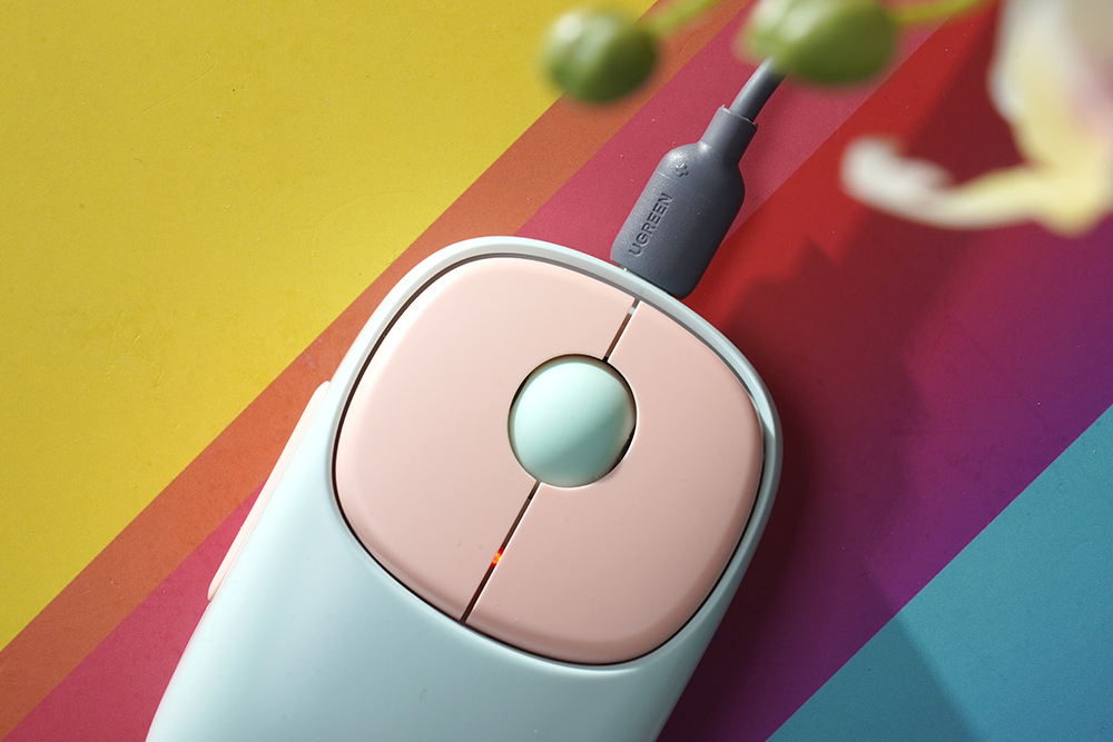 유그린 충전식 무선 마우스 MU102의 색상은 체리 블라썸 핑크와 딥 씨 블루 중에서 선택할 수 있습니다. 자신의 데스크 테리어에 따라서 색상을 맞춰서 활용할 수 있습니다.