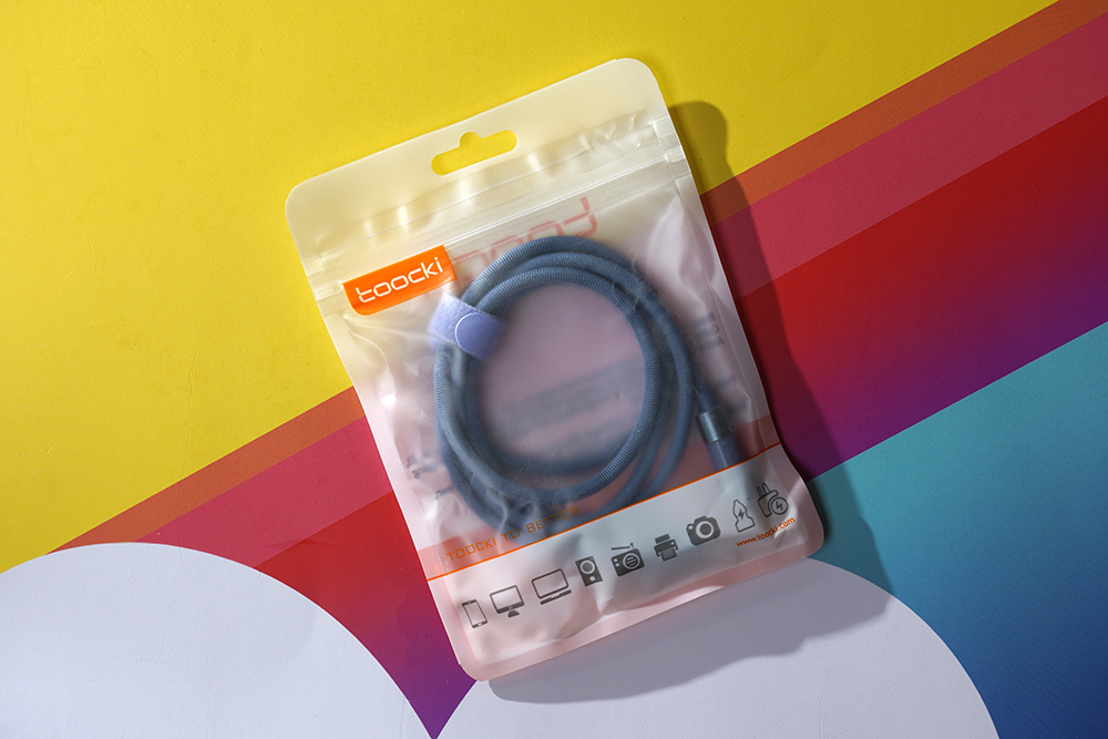 Toocki 디스플레이 C타입 고속 충전케이블의 케이블 자체는 페브릭 소재로 코팅이 되어 있습니다. 그래서 만지는 촉감이 좋은 것은 물론이고 잘 구부러지는 편이어서 다양한 공간에서 활용할 수 있을 것으로 예상합니다.