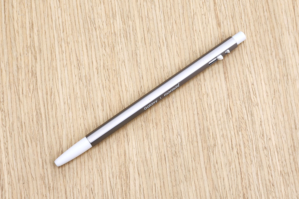 모나미 153 S펜 클래식의 바디는 메탈로 제작되었고 육각형태로 제작되어서 그립감이 상당히 뛰어난 편입니다. 그리고 옆쪽에는 Galaxy와 monami라는 문구가 인쇄되어 있습니다.