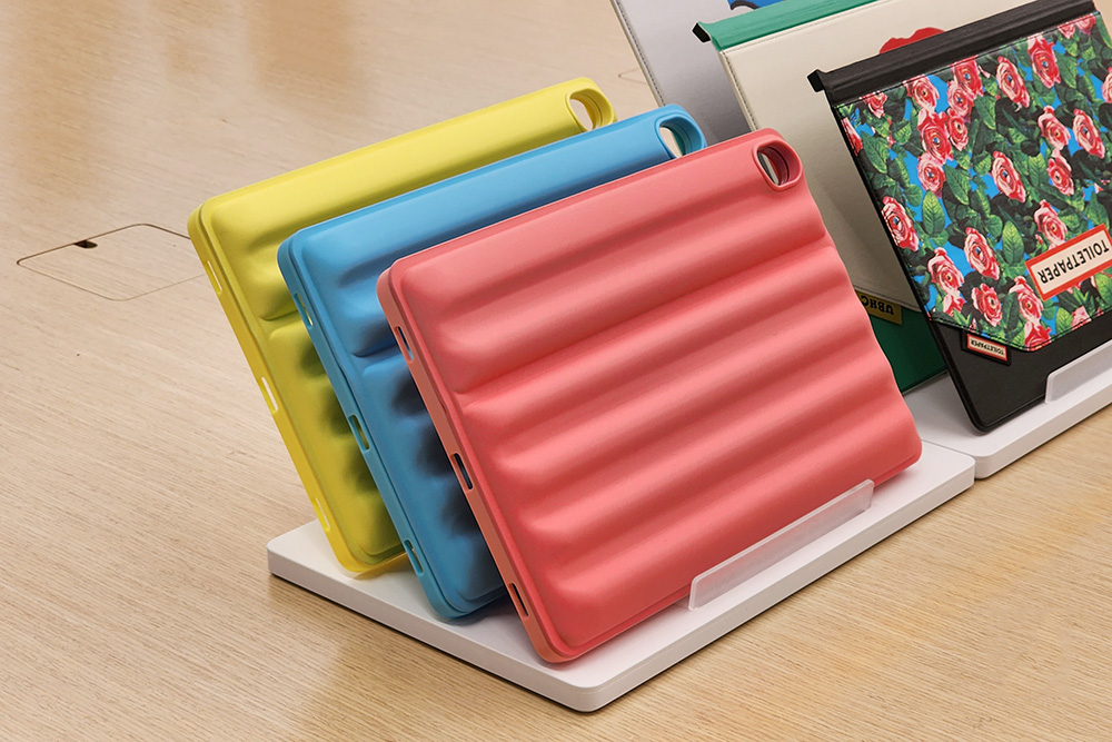 우선 매직 엠보 스탠딩 커버의 경우에는 갤럭시 탭 S9와 S9+ 용으로만 출시되었습니다. 색상은 블루와 핑크 그리고 옐로우 중에서 선택할 수 있습니다. 편안한 그립감과 뛰어난 보호력을 제공하기 때문에 어린애들이 태블릿을 사용해야 하는 상황에 활용하면 좋을 것 같습니다.