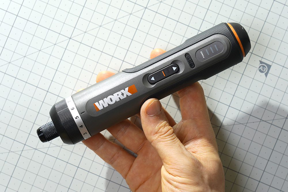 웍스 WX242 2세대 무선 전동 드라이버의 사이즈는 37.5 x 37.5 x 190mm인데요. 한 손으로 사용하기에 딱 적합한 크기라고 생각되었습니다. 그리고 기다란 일자 형태로 제작되었는데요. 기역자 형태와 비교해서 장단점이 있는 편입니다. 저는 기역자 형태를 조금 더 선호하는 편입니다.