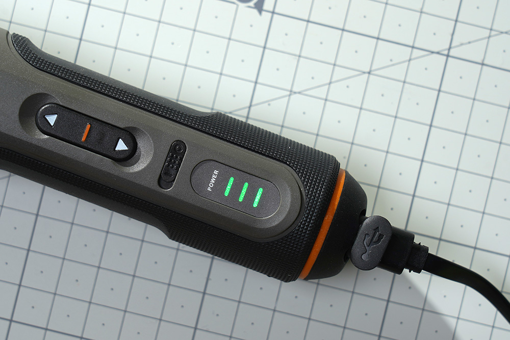 웍스 WX242 2세대 무선 전동 드라이버는 USB-C 케이블을 이용해서 간단하게 충전을 할 수 있습니다. 그런데 테스트 결과 어댑터는 조금 가리는 것을 보입니다. 그래서 충전이 되지 않는다면 어댑터를 변경해 보시길 바랍니다.