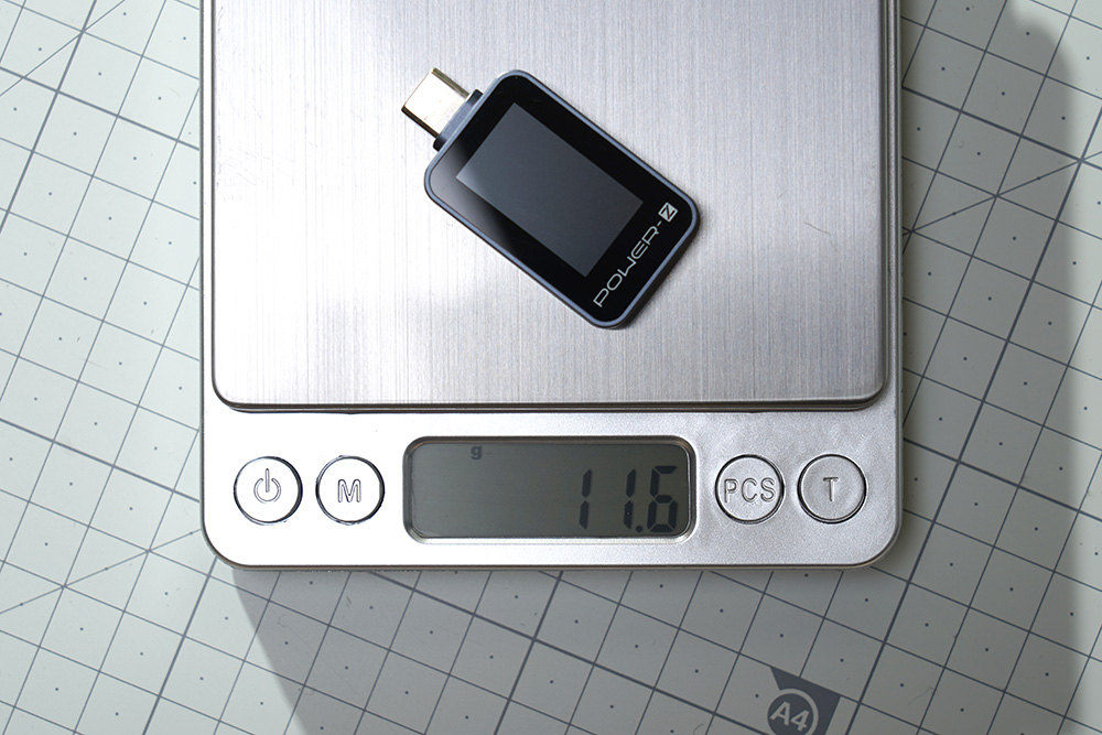 무게는 약 11.6g(스펙상 11.8g)으로 측정되었습니다. 역시 가벼운 편이기 때문에 케이블이나 측정하려는 장치 그리고 어댑터에 연결해서 사용해도 부담을 주지는 않을 것으로 예상합니다.