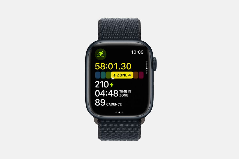 애플워치 시리즈9에는 시리즈8 대비 2배 향상된 2000니트의 밝기를 제공합니다. 그래서 햇빛이 강한 야외에서도 시인성이 좋다는 장점이 있습니다. 야외 활동이 많은 분께 유용할 것으로 예상합니다. 그 외에도 1니트까지 밝기를 낮출 수 있어서 극장이나 이른 아침에도 사용할 수 있다고 합니다.