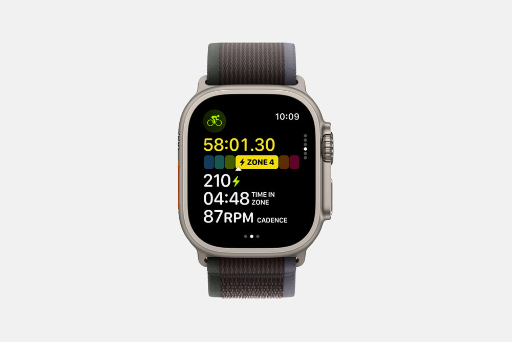 그리고 애플워치 울트라2를 위한 새로운 시계 페이스인 모듈 Ultra도 공개되었습니다. 대화면 디스플레이의 장점을 활용해서 모서리 부분에 초 단위나 고도, 수심 등의 데이터를 표시할 수 있다고 합니다.