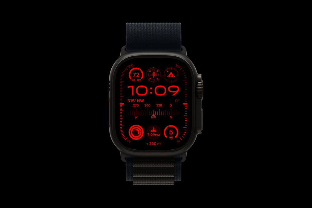 그리고 애플워치 울트라2를 위한 새로운 시계 페이스인 모듈 Ultra도 공개되었습니다. 대화면 디스플레이의 장점을 활용해서 모서리 부분에 초 단위나 고도, 수심 등의 데이터를 표시할 수 있다고 합니다.