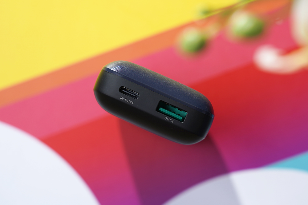 옆쪽을 살펴보면 입력과 출력을 위한 USB C타입 포트가 배치되어 있고 옆쪽에는 출력을 위한 USB A타입 단자가 배치되어 있습니다. 그래서 한 번에 두 대의 제품을 충전시켜 줄 수 있습니다.