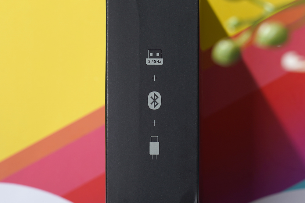 반대쪽 옆면에는 2.4GHz 무선과 블루투스 그리고 USB 유선 3가지 모드로 사용할 수 있다는 내용이 설명되어 있습니다. 그래서 상황에 맞게 다양한 장치들과 연동해서 활용할 수 있습니다.
