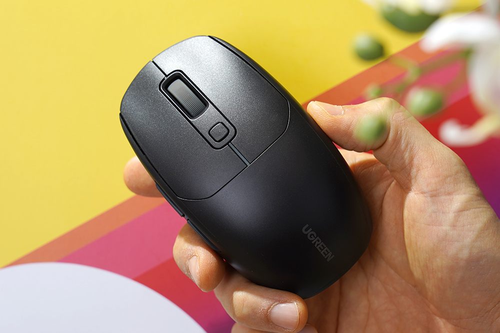 유그린 MU103 무선 게이밍 마우스의 크기는 64.3 x 114.3 x 38.6mm로 제작되었는데요. 콤팩트한 편이어서 노트북과 함께 부담 없이 휴대할 수 있을 것으로 예상합니다.