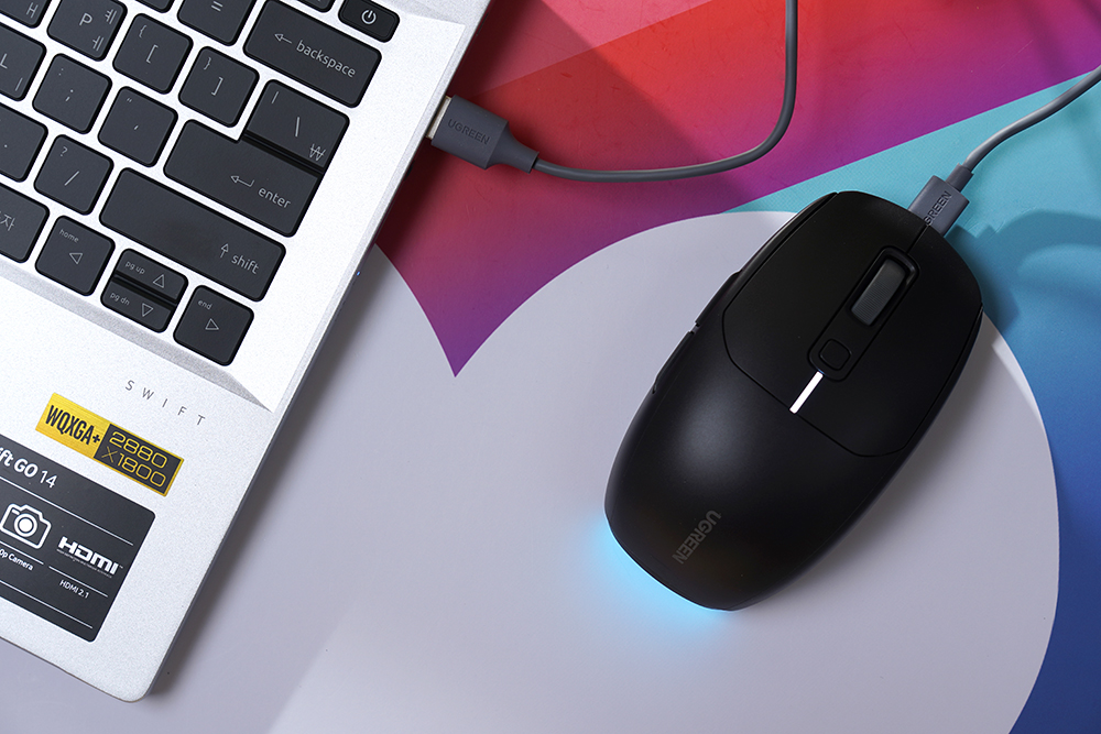 유그린 MU103 무선 게이밍 마우스의 가장 일반적인 사용 방법은 유선 연결입니다. 배터리가 완전히 방전되었을 때나 충전이 필요한 순간에 노트북이나 데스크톱 PC에서 활용해 주면 좋을 것 같습니다.