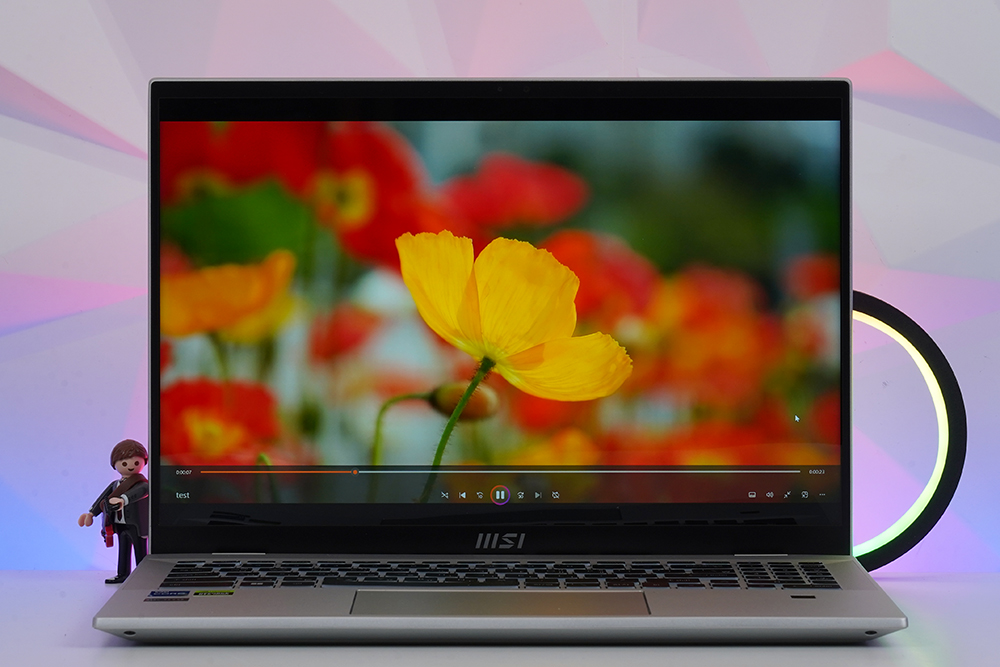 MSI 프레스티지 16 Studio A13VF Mini LED의 좌우 베젤은 4.5mm로 슬림한 편입니다.그래서 콘텐츠에 더욱 몰입할 수 있는 것은 물론이고 노트북의 크기도 상대적으로 콤팩트하게 느껴집니다. 그리고 상단에는 얼굴인식으로 잠금을 해제할 수 있는 IR FHD 웹캠이 탑재되었습니다.