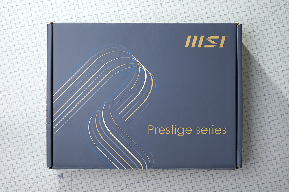 MSI 프레스티지 16 Studio A13VF Mini LED의 박스는 세련된 블루 느낌의 컬러로 제작되었습니다. 그리고 전면에는 Prestige series라는 문구가 골드 컬러로 각인되어 있습니다.