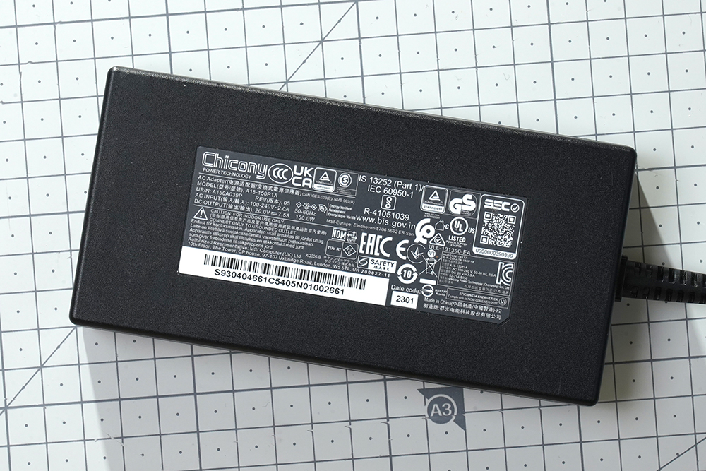 어댑터는 휴대하는데 크게 부담이 되지는 않는 크기로 제작되었고 스펙을 살펴보면 입력은 프리볼트를 지원해서 해외에서도 멀티 커넥터만 있으면 사용할 수 있고 출력은 20V/7.5A 150W입니다.