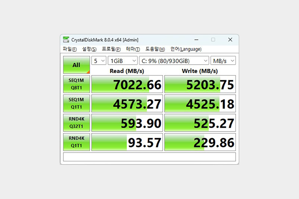 MSI 프레스티지 16 Studio A13VF Mini LED에는 1TB 용량의 NVMe M.2 SSD가 탑재되었습니다. 속도가 상당히 빠른 편이고 용량도 부족하지 않으리라고 판단되었습니다.