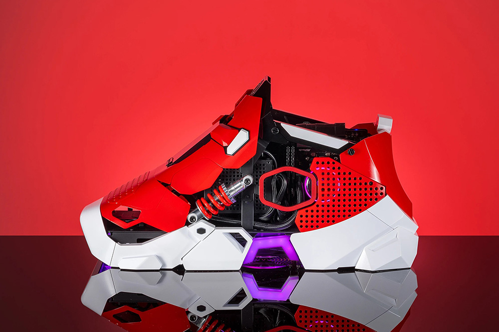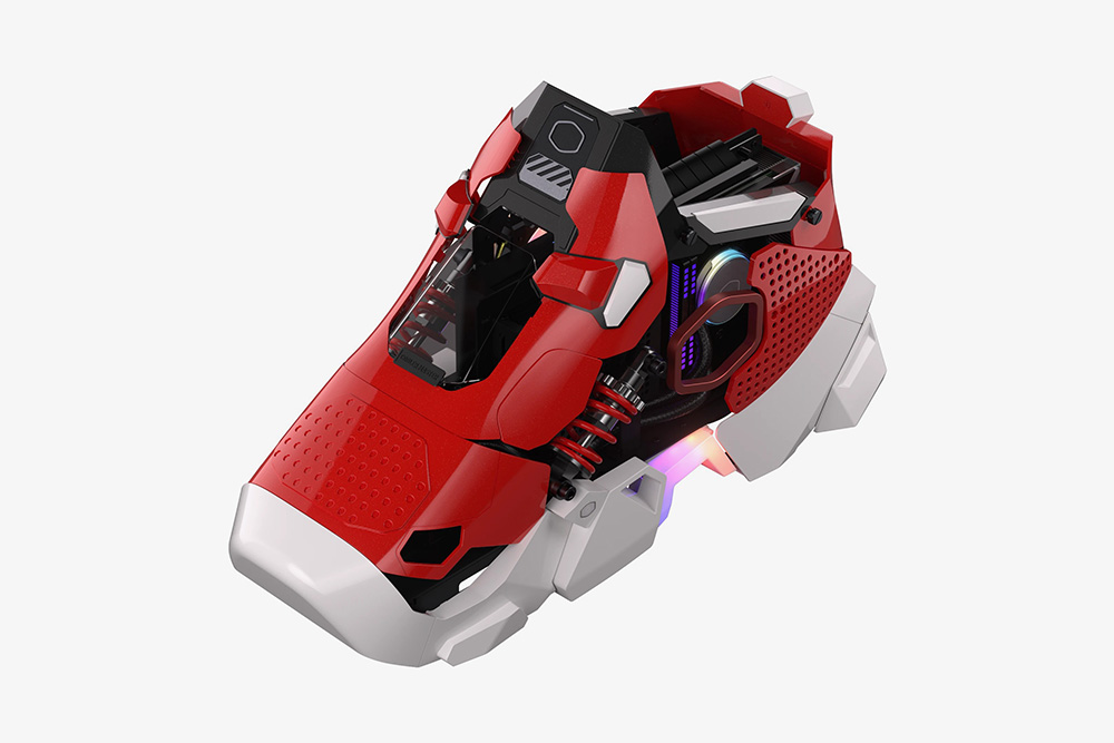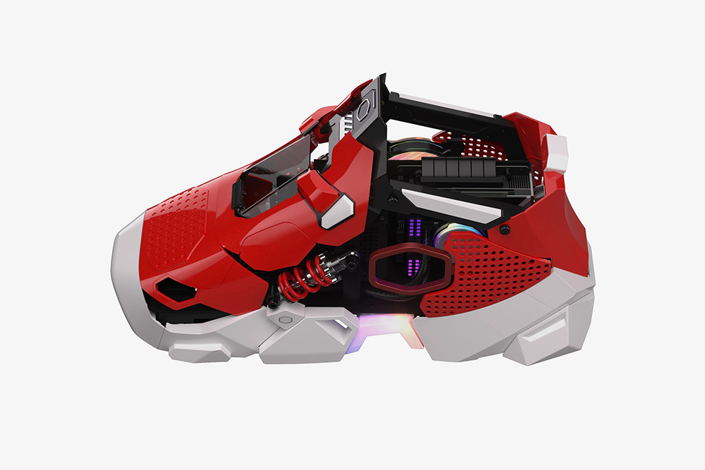 쿨러마스터 스니커즈 X의 가장 인상적인 부분은 바로 디자인이라고 할 수 있습니다. Case Mod World Series 2020에서 최고 아트 디렉션 상을 받은 JMDF에 의해서 디자인되었는데요. 흡사 스니커즈를 연상시키는 형태로 제작되었습니다. 특히 저는 레드와 화이트 컬러의 조합이 상당히 인상적이었습니다.