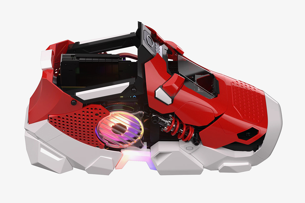 쿨러마스터 스니커즈 X의 가장 인상적인 부분은 바로 디자인이라고 할 수 있습니다. Case Mod World Series 2020에서 최고 아트 디렉션 상을 받은 JMDF에 의해서 디자인되었는데요. 흡사 스니커즈를 연상시키는 형태로 제작되었습니다. 특히 저는 레드와 화이트 컬러의 조합이 상당히 인상적이었습니다.