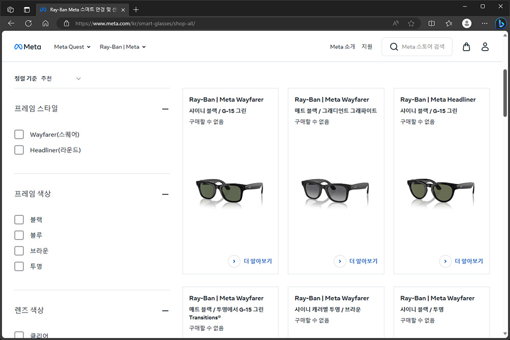 레이밴 메타 차세대 스마트 안경은 크게 Wayfarer(스퀘어)와 Headliner(라운드) 두 가지 프레임 스타일로 구성되어 있고 색상이나 디자인은 상당히 다채로운 편입니다. 그리고 가격은 $299(약 40)만원부터 시작합니다.