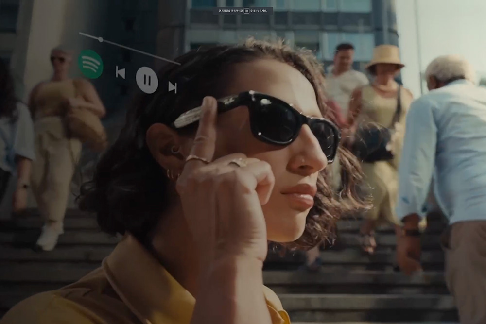 레이밴 메타 차세대 스마트 안경의 구조를 확인해 보면 경첩의 안쪽에 전원 스위치가 배치되어 있고 오른쪽 다리 위에 촬영 버튼이 탑재되었습니다. 그리고 옆쪽에 터치패드가 탑재되어 있어서 음악을 제어할 수 있고 다리의 뒤쪽에 스피커가 탑재되었습니다.