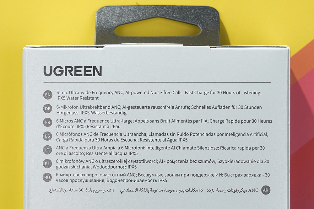 유그린 T6 블루투스 이어폰의 특징을 살펴보면 우선 6개의 마이크를 탑재해서 깔끔한 전화 통화와 함께 액티브 노이즈 캔슬링(ANC) 기능을 지원합니다. 그리고 충전 케이스까지 활용하면 최대 30시간 정도 사용할 수 있는 배터리 시간을 제공합니다. 그 외에도 하이-레스 오디오(Hi-Res Audio)를 지원하는 것을 확인할 수 있습니다.