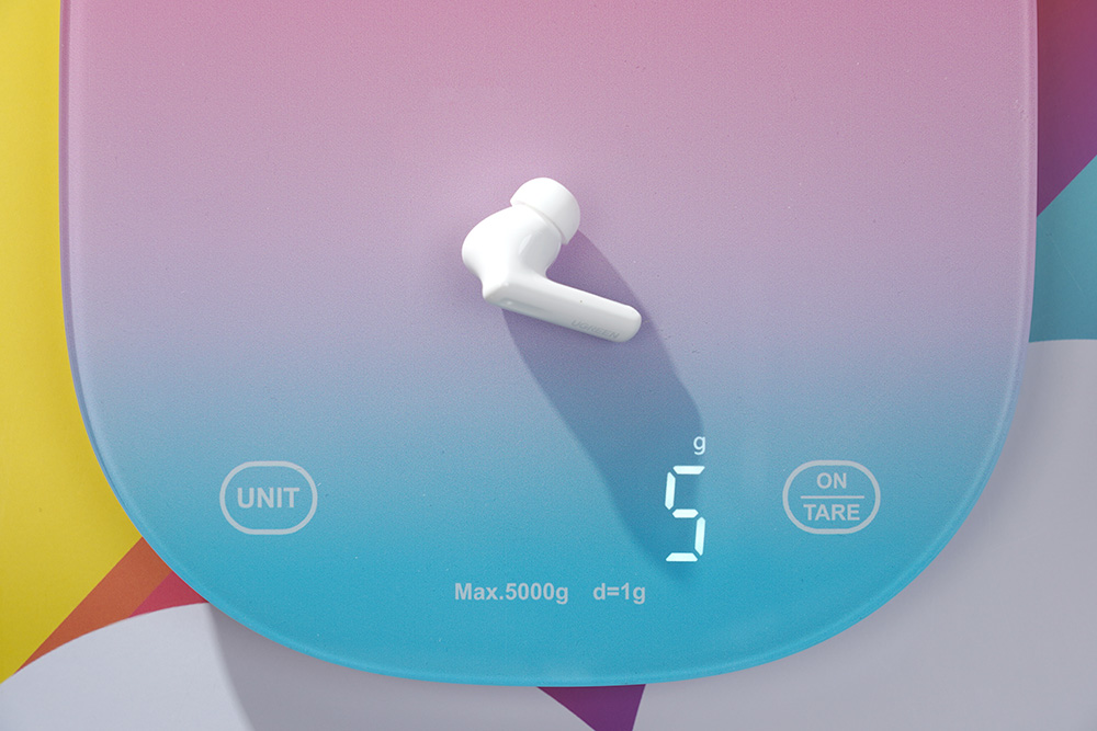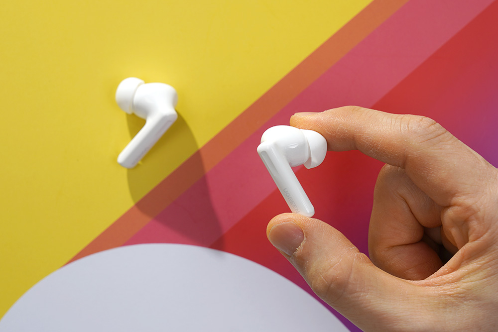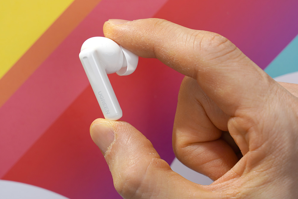 유그린 T6 블루투스 이어폰의 이어버드는 일명 콩나물이라고 불리는 형태로 디자인되었습니다. 별도의 다리가 있는 형태여서 조금 더 안정적으로 착용할 수 있습니다. 그리고 무게도 약 5g으로 가벼운 편이어서 장시간 귀에 꽂은 상태에서 음악이나 동영상을 감상하거나 전화 통화를 할 수 있습니다.