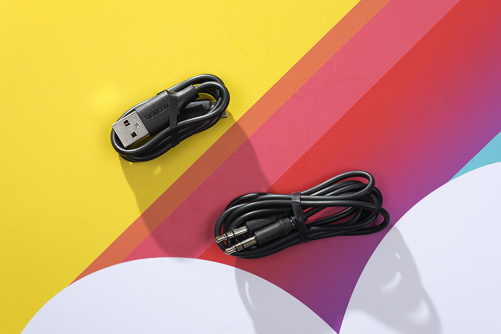 그리고 충전을 위한 USB-C 케이블과 유선 연결을 위한 3.5mm 오디오 케이블이 제공됩니다. 참고로 유그린 맥스5 블루투스 헤드폰은 유선 연결 기능을 지원하는데요. 최근 유선 이어폰이나 헤드폰 자체가 많지 않은 편이어서 비상시에 은근히 유용한 편입니다.