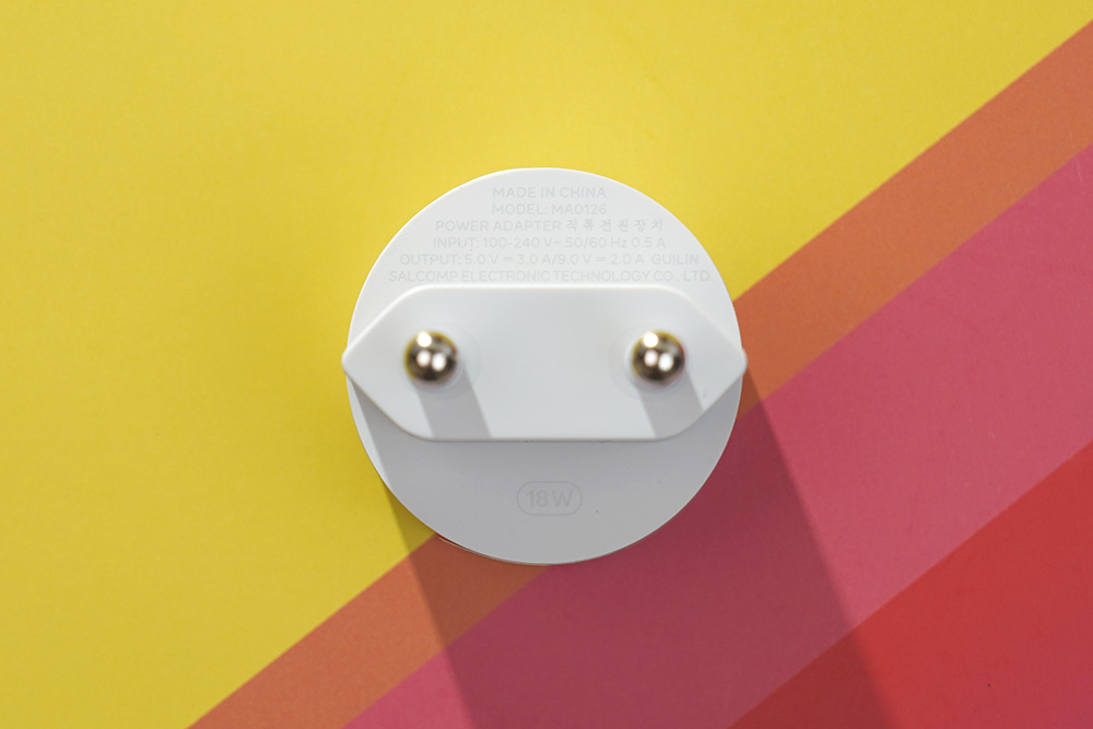 액세서리에는 18W 출력을 지원하는 전원 어댑터와 USB-C 충전 케이블이 포함되어 있습니다. 그리고 한국에 정식으로 발매된 제품을 구매하면 한국 전용 콘센트가 장착된 제품이 배송됩니다.