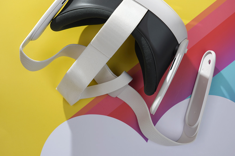 메타 퀘스트3 (Meta Quest3)의 스트랩은 후면과 상부를 고정하는 방식으로 구성되어 있습니다. 이전 세대의 퀘스트2와 비교하면 편리하지만 흰색이라서 오염이 잘될 것으로 예상됩니다. 그리고 간단하게 분리를 할 수 있고 헤드스트랩으로 교체해서 활용할 수 있습니다.