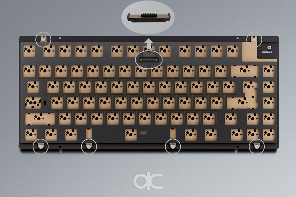 Qwertykeys QK75N 커스텀 키보드의 또 다른 개선점은 리본 케이블 대신 자석 커넥터가 도입되었다는 점입니다. 그래서 조금 더 편리하게 조립할 수 있을 것으로 예상합니다. 실제로 리본 케이블은 내구성도 그렇게 좋지 못하고 조립하기도 약간 번거로웠습니다.