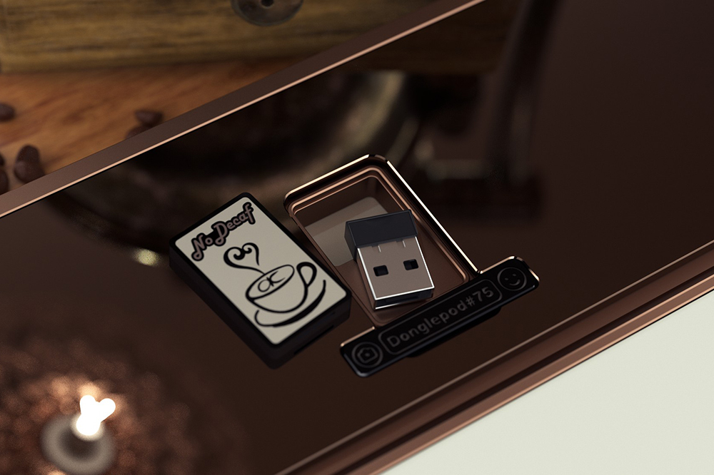 그리고 교체 가능한 뱃지의 경우에는 동글 팟의 커버로 변신했습니다. 이전 세대의 제품들은 2.4GHz 동글을 보관할 장소가 마땅치 않았는데요, Qwertykeys QK75N 커스텀 키보드에서는 이러한 부분들이 개선되었습니다.