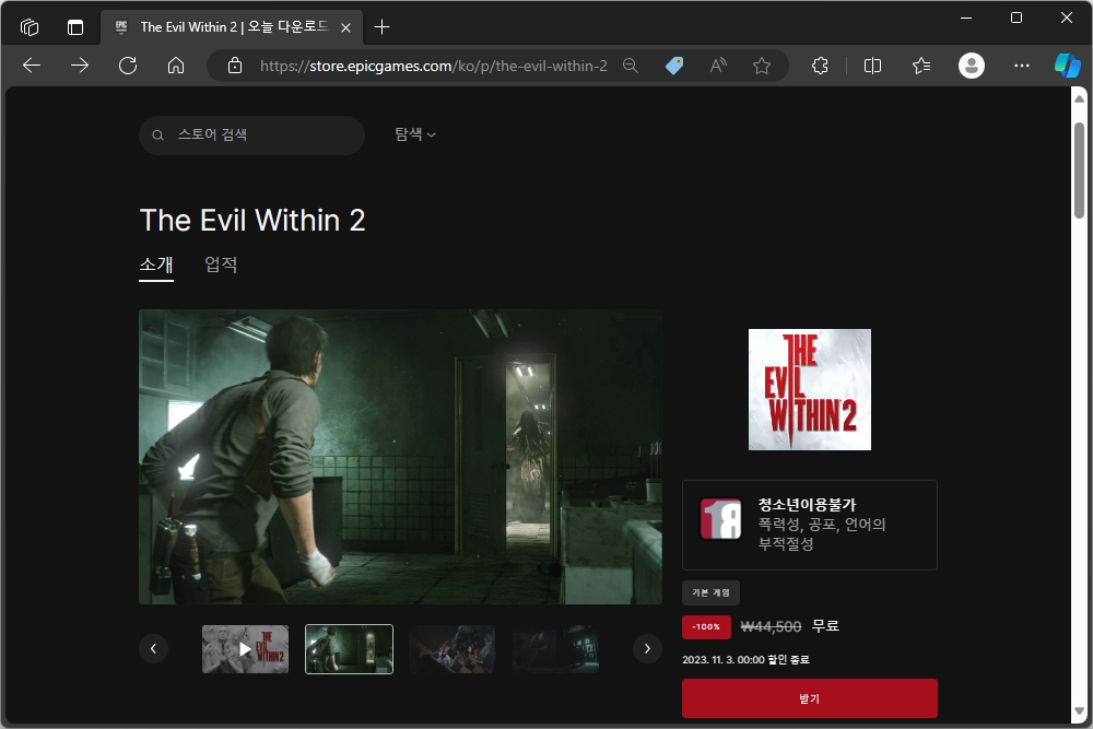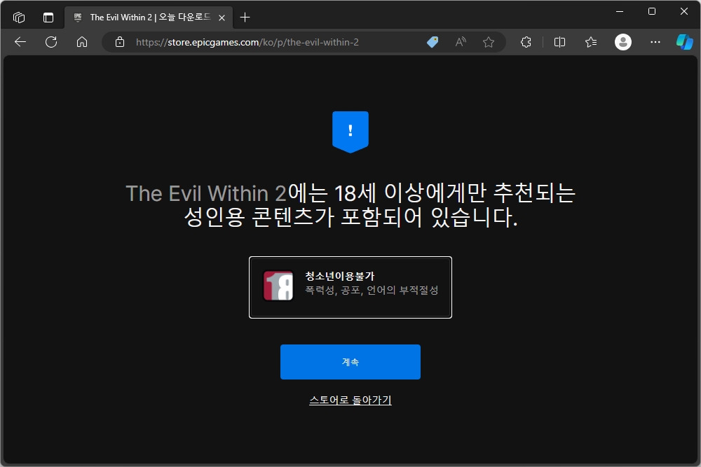 디 이블 위딘 2는 아래의 링크에서 다운로드 받을 수 있습니다. 참고로 18세 이상만 플레이할 수 있는 청소년이용불가 게임이기 때문에 플레이나 시청에 주의가 필요합니다.