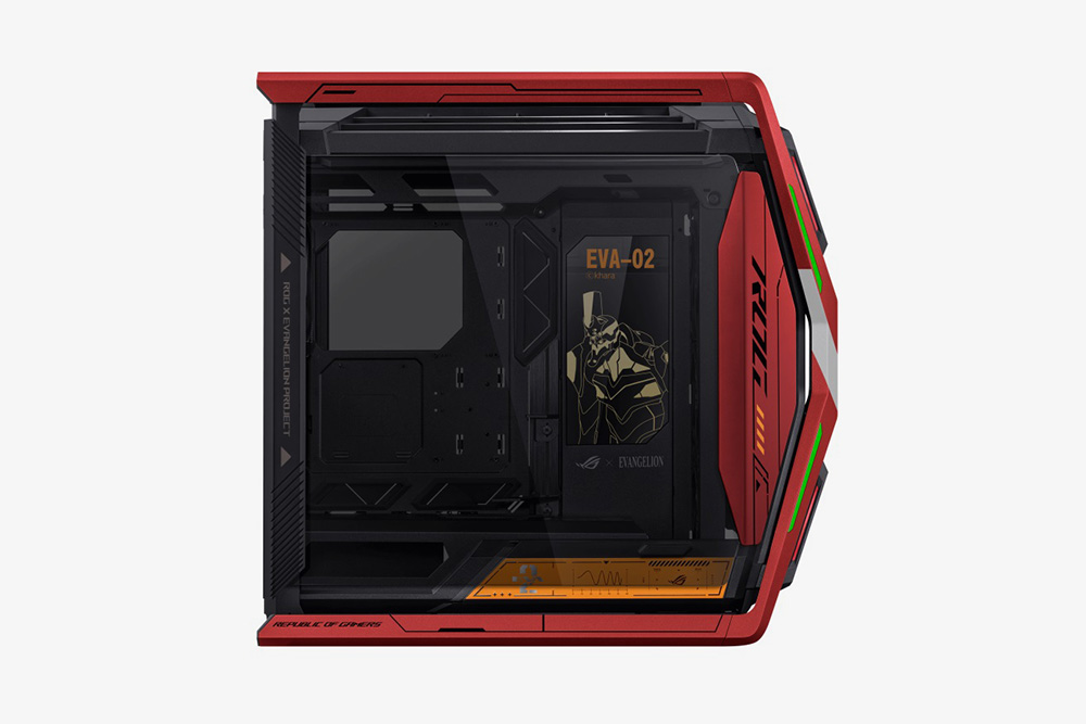 가장 먼저 살펴볼 제품은 ROG Hyperion EVA-02 Edition 케이스입니다. 420mm의 듀얼 라디에이터과 140mm 팬 4개를 장착할 수 있도록 설계되었습니다. 디자인적인 완성도가 높은 것은 물론이고 숨겨진 서랍이 내장되어 있어서 나사나 케이블 등을 보관할 수 있습니다. 참고로 가격은 449.90유로(약 63만원입니다.)
