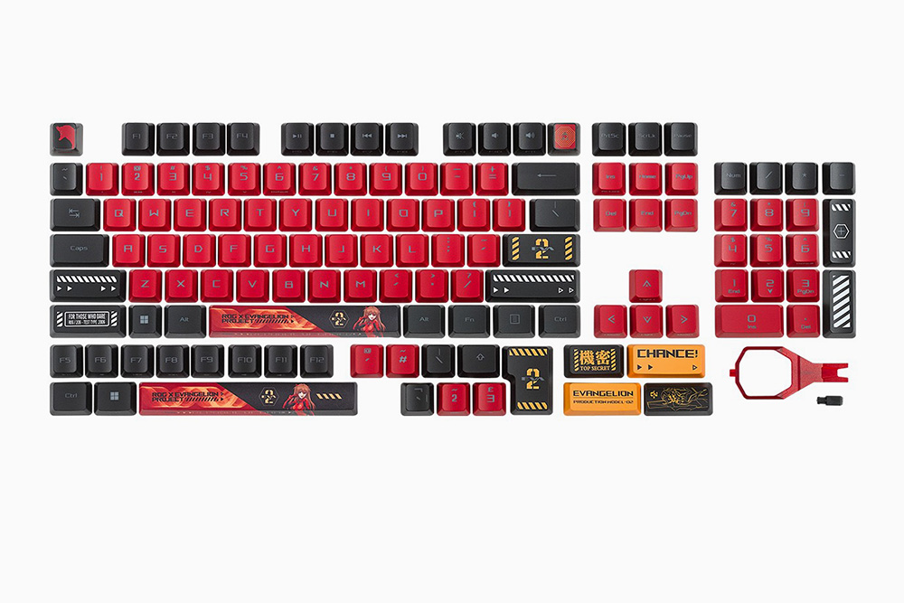 그립을 향상 시켜주기 위한 ROG Harpe Ace Mouse Grip Tape EVA-02 Edition와 ROG Keycap Set For RX Switches EVA-02 Edition 키캡ㄷ로 별도로 발매되었습니다. 취향에 따라서 구매해서 사용할 수 있습니다.